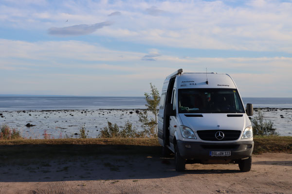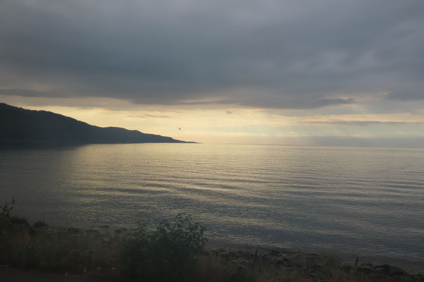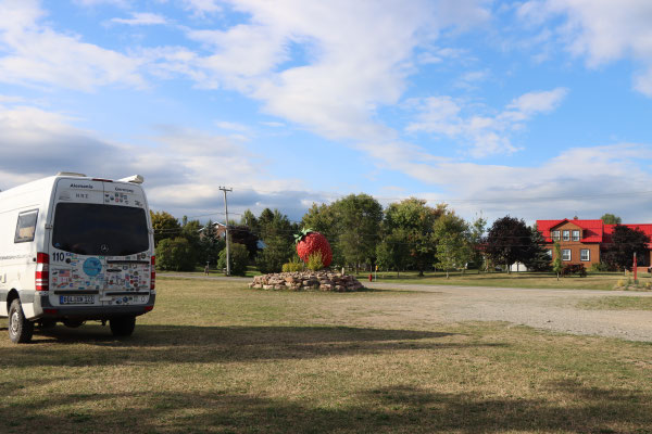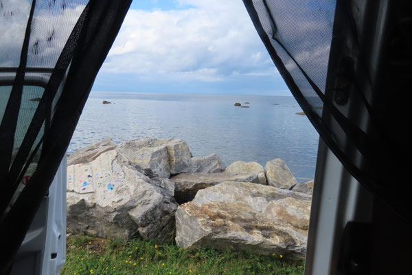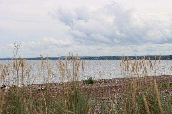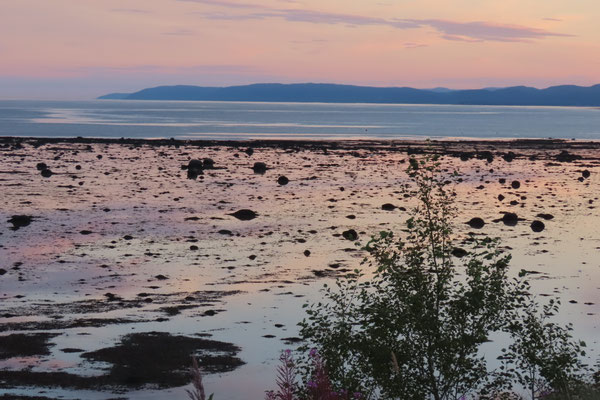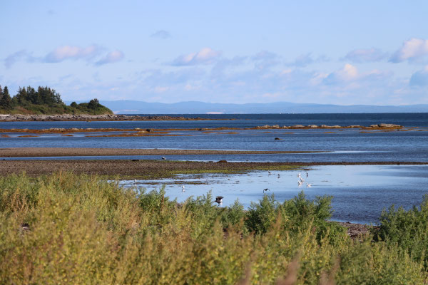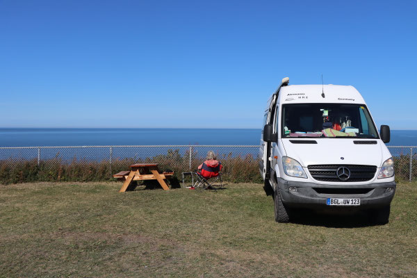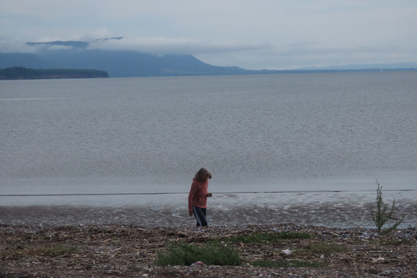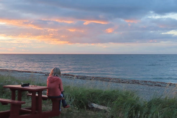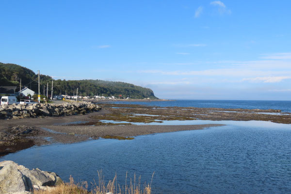 ist lohnenswert. In Tadoussac ist es nicht möglich einen Platz zur Übernachtung zu finden. Total überfüllt und jede Menge Schilder--kein Overnight Parking oder Overnight Camping. Also fahren wir weiter und landen schließlich in Bergeronnes. Wie kann es anders sein, direkt am Strom--herrlich!