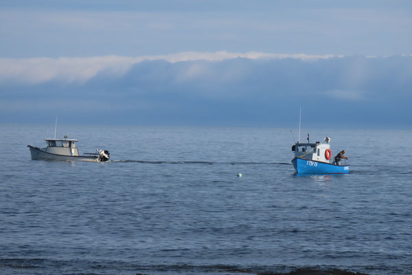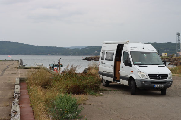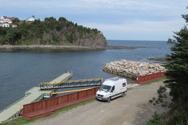 Gegen 17:00 Uhr lassen wir Perge hinter uns. Aber die Küste ist auch danach fast lückenlos zugebaut. Zum Glück finden wir am Hafen von Ste.Therese de Gaspe einen Platz zum Übernachten.