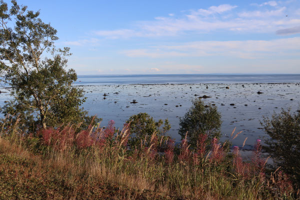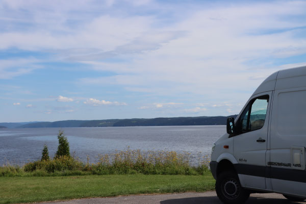 Kilometern haben wir eine grandiose Aussicht auf den St. Lorenz Strom, welcher eine kaum zu
