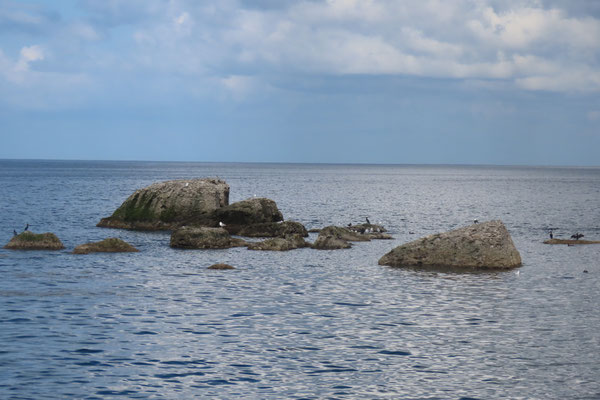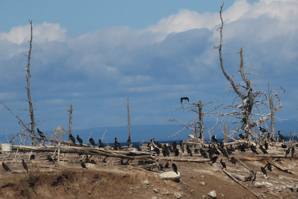 Aber direkt darunter auf der linken Seite der Straße ist ein schöner Aussichtspunkt ohne Verbotsschild. Daher beschlagnahmen wir nach 56 km diesen Platz. Wir beobachten Komorane ,