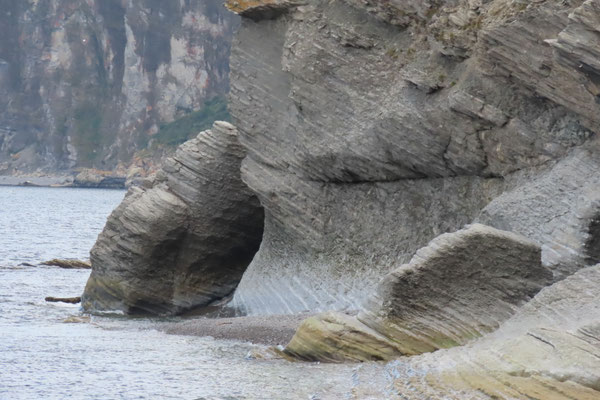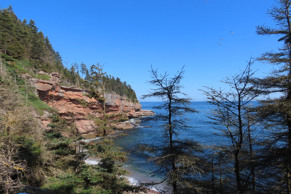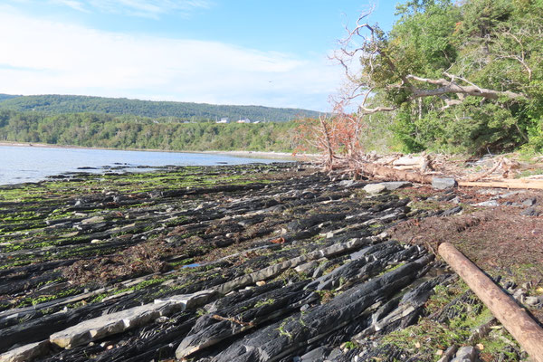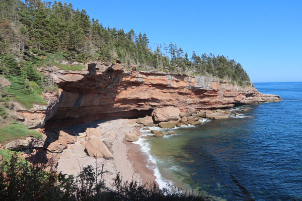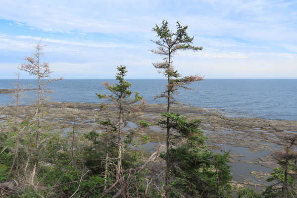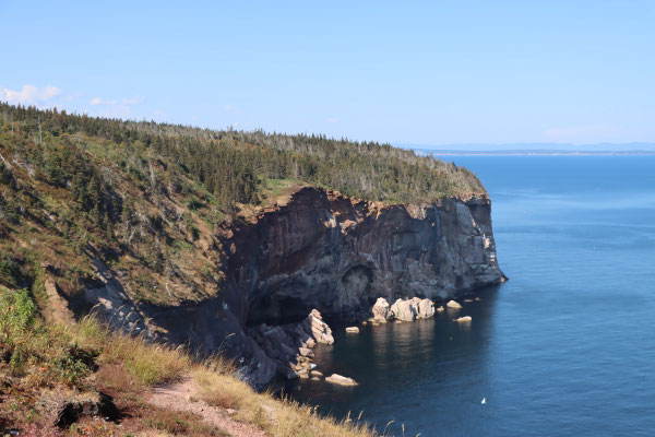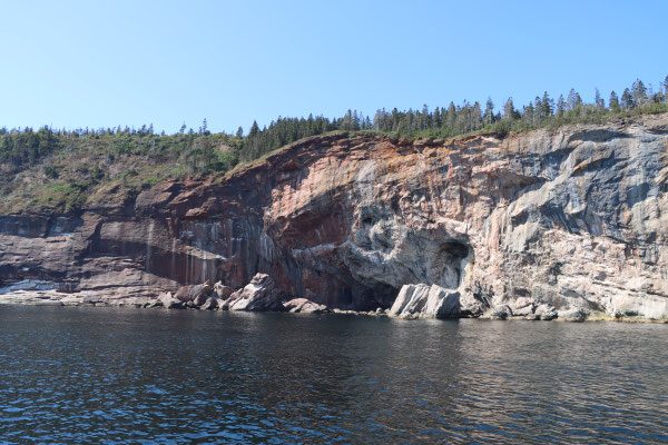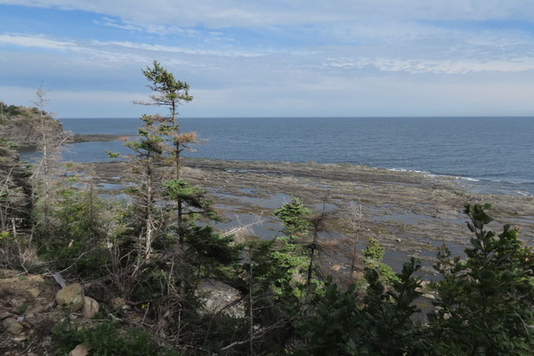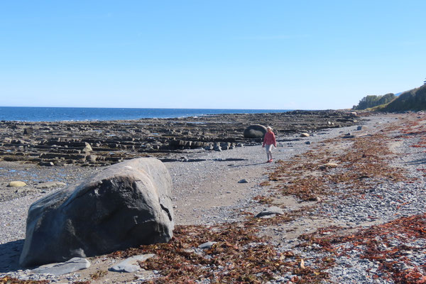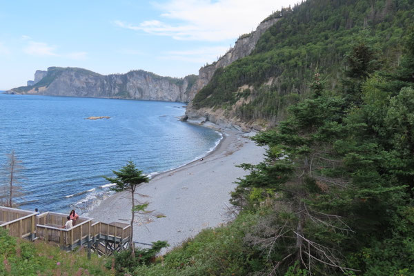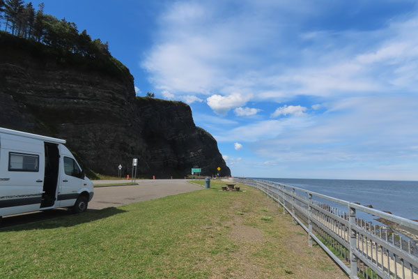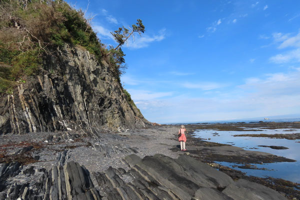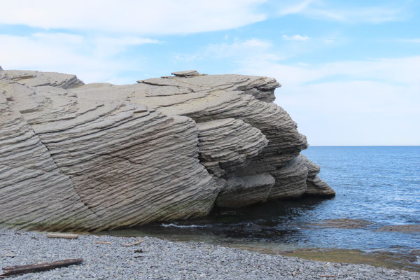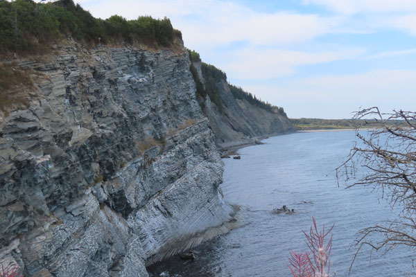 Hinter Riviere de Renard fahren wir in den Nationalpark Forillon, wo wir am Cape Bon Ami den Hobel am Parkplatz abstellen. Eindrucksvolle Steilküste, interessante Felsformationen, mehrere
