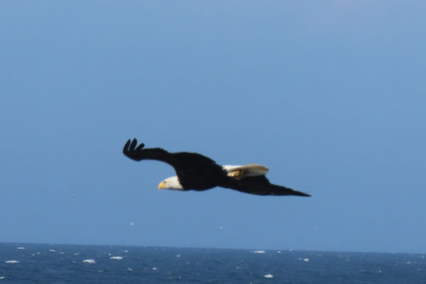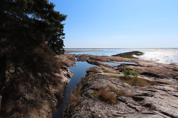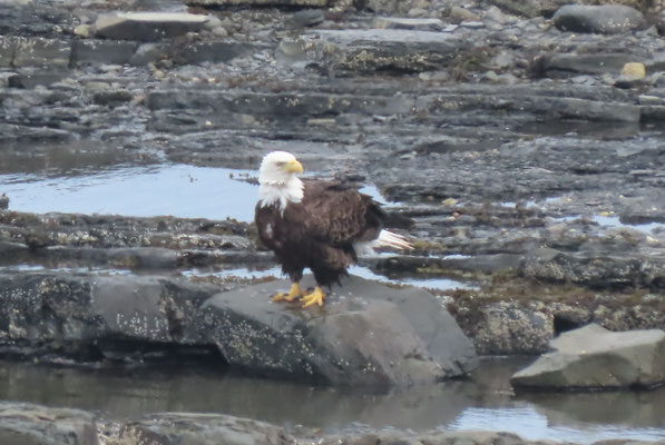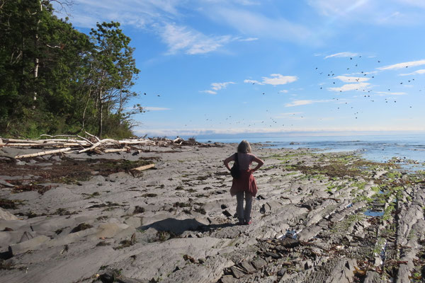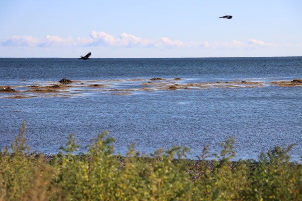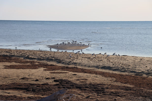 ersichtlich. Der schöne Blick auf die Küste ist je nach Wasserstand aufgrund der Gezeiten sehr unterschiedlich. Wir unternehmen einen Strandspaziergang, sehen dabei einen Seeadler und einen