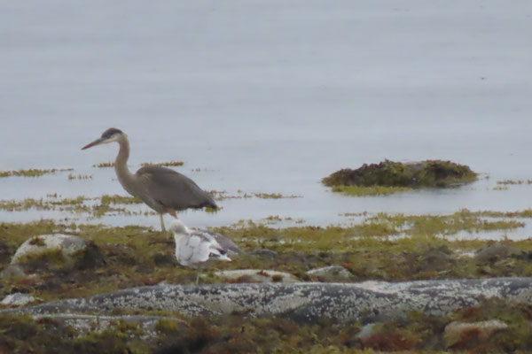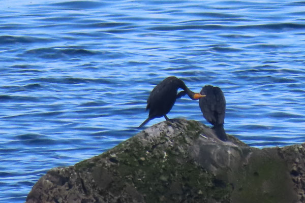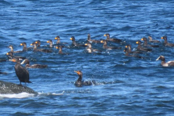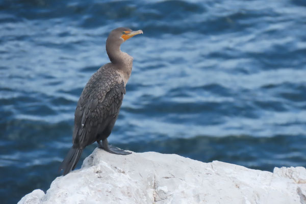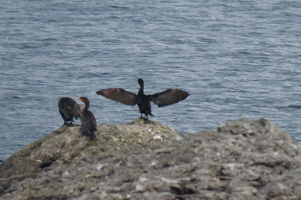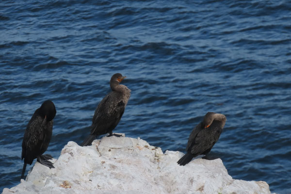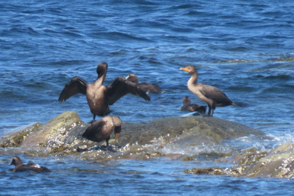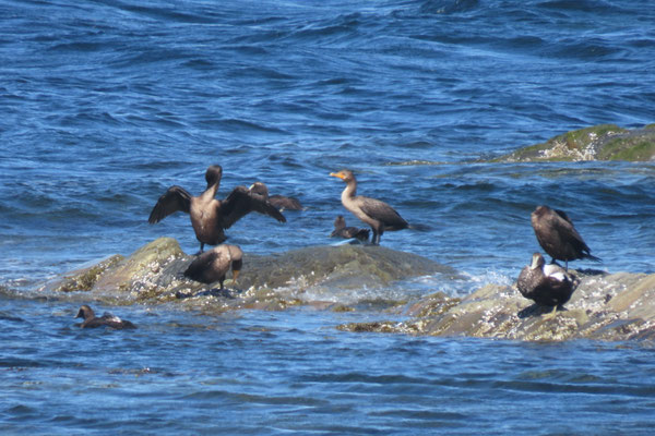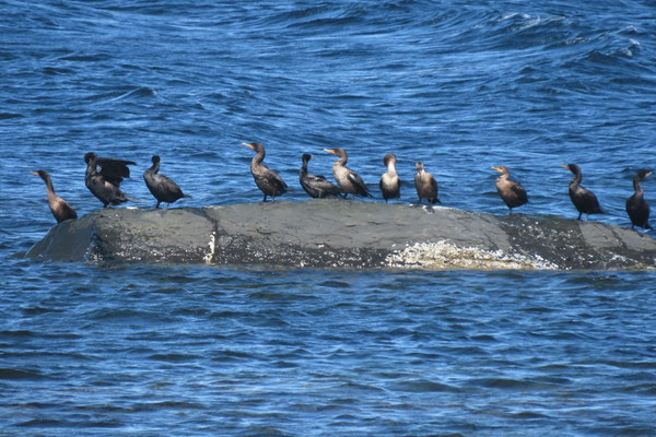 Vogel, den wir nicht identifizieren können. Ansonsten unterschiedliche Möwen, Kormorane und