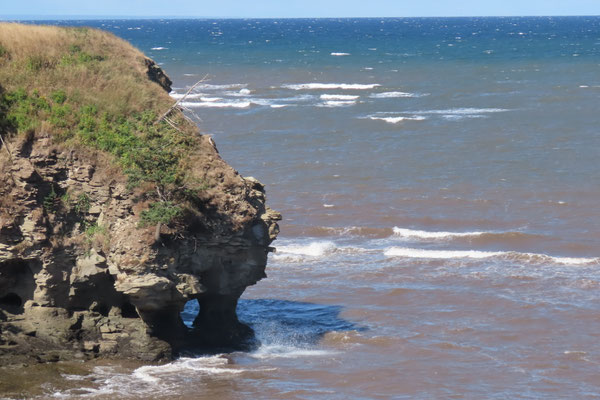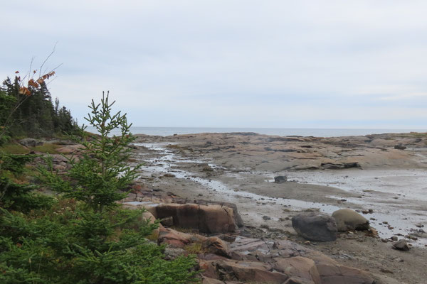 Da der St. Lorenz Strom hier sehr breit ist und die Wellen unter uns mit Getöse an die Felsen prallen, haben wir das Gefühl über dem Meer zu stehen.