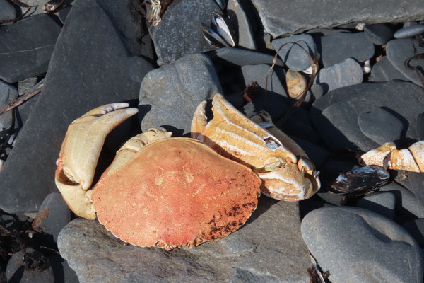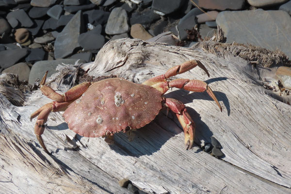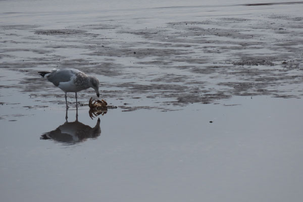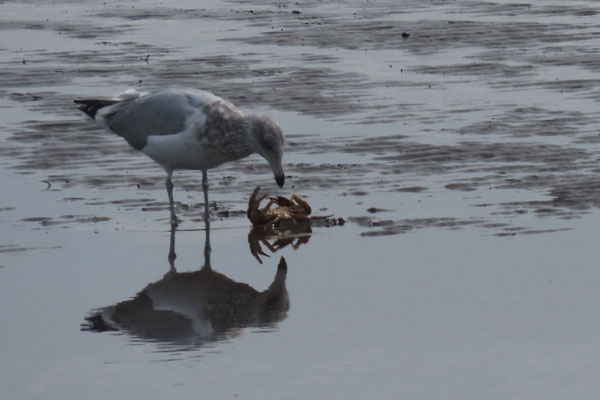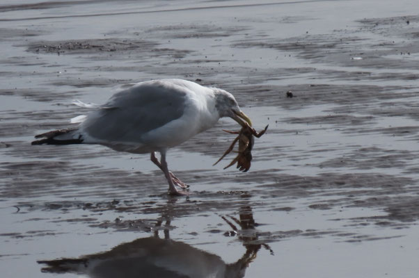 Die Möwen holen sich immer wieder Krebse und es ist faszinierend zusehen, wie sie den Panzer knacken, um an die leckeren Innereien zu gelangen.