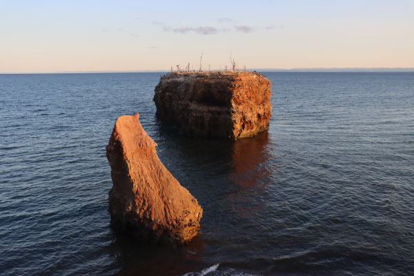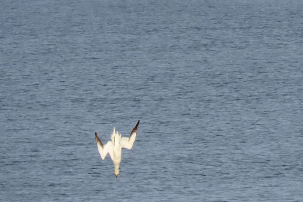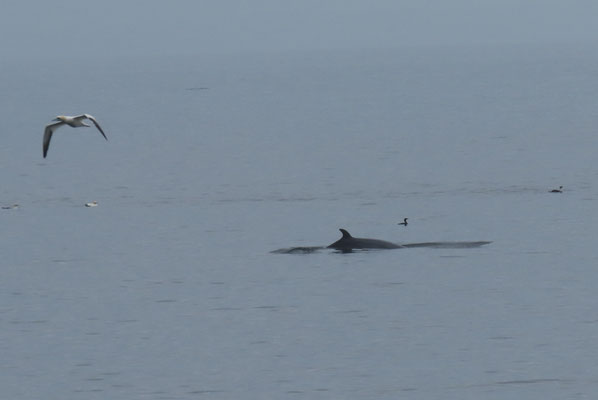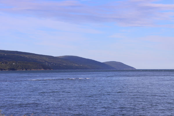 Nun sind es nur noch 40 km bis Godbout, einem Mini Ort. Von hier geht morgen um 11:00 Uhr die Fähre zur Halbinsel Gaspesie. Bei einem Rastplatz halten wir, das Wetter wird immer besser und wir beobachten die Northern Gannet ( Basstölpel) beim Fischfang. Wie Kamikaze stürzen sie sich ins Meer. Herrlich, man kann stundenlang zuschauen. Zudem tummeln sich zwei Minkwale in der Bucht und sind ebenfalls hinter dem Fischschwarm her. Minkwale werden 6-9 m groß und bis zu