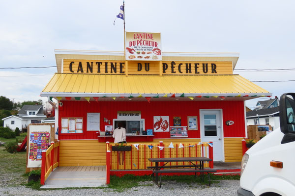 was Deutschland inzwischen für ein armseliger Staat ist und wie die Bevölkerung mit öffentlichen Einrichtungen umgeht. Inzwischen weht ein kräftiger Wind, der beim St. Lorenz Strom zu Wellen wie am Meer führt. Das Mittagessen gibt es in einer malerischen Kantine des Ortes C' Anse de