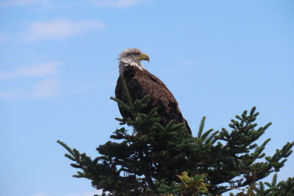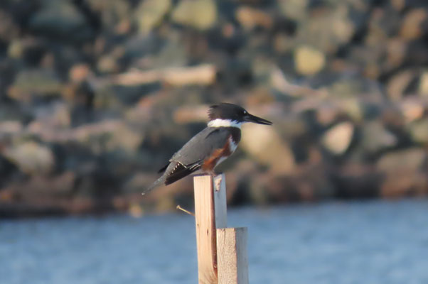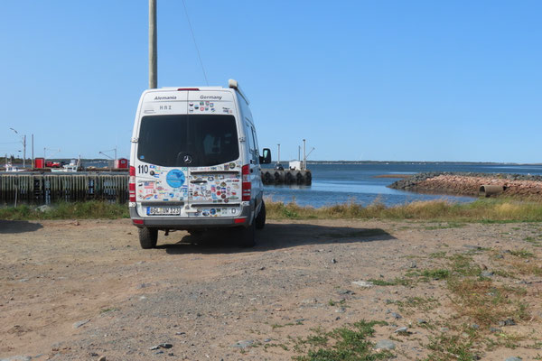 Die Fahrt endet heute nach 109 km in Shippagan. In dieser sehr netten Kleinstadt schauen wir uns das Aquarium an. Gleich daneben befindet sich der kleine Hafen, wo wir einen Platz zur Übernachtung finden. Abends können wir noch einen Kingfisher bei der Nahrungssuche beobachten.