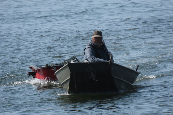 Die Zeit Verschiebung beträgt nur noch 5 Stunden zur MEZ. Es ist 16:00 Uhr, es regnet, alles ist grau in grau. Schade, denn die Sicht zurück auf die Ausläufer der Appalachen muss sehr schön sein. Nun stehen wir an einer kleinen Anlegestelle für Fischerboote und es schüttet.