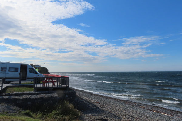 In Chandler kaufen wir ein und in Port Daniel, später finden wir einen schönen Platz, wo wir ab 10:00 Uhr bis nach dem Mittagessen bleiben. Gar nicht mehr so einfach, Parkplätze zu finden, die Küste ist wirklich gnadenlos zugebaut. Die Orte gehen direkt ineinander über. Nahezu jede