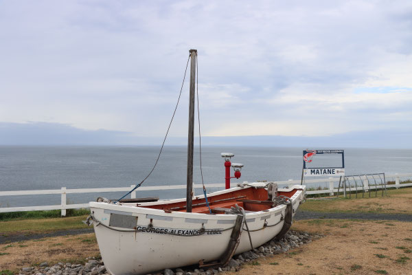 Über St. Paul und Saint Joseph de la Riva fahren wir auf der Straße 360 bis Malbaie. Hier stehen wir beim Parkplatz des Museums, wieder direkt am St. Lorenz Strom, der hier schon eine beachtliche