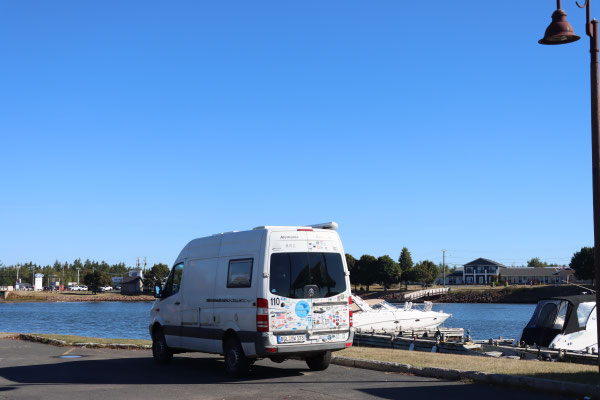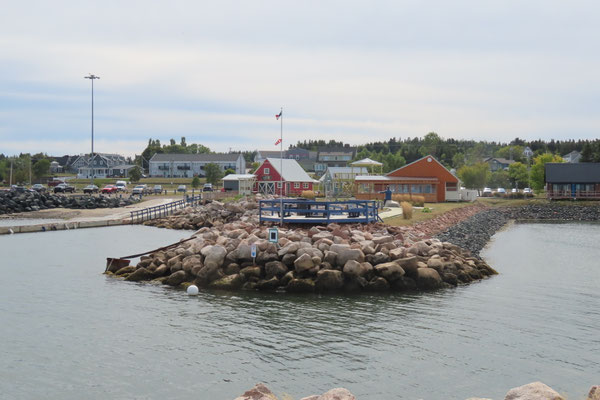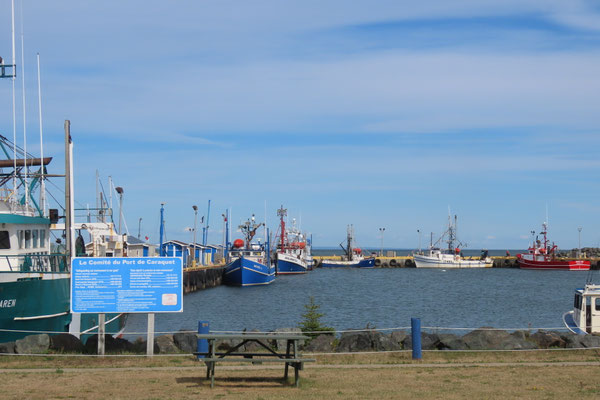 Gegen 17:00 Uhr lassen wir Perge hinter uns. Aber die Küste ist auch danach fast lückenlos zugebaut. Zum Glück finden wir am Hafen von Ste.Therese de Gaspe einen Platz zum Übernachten.