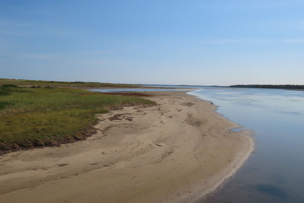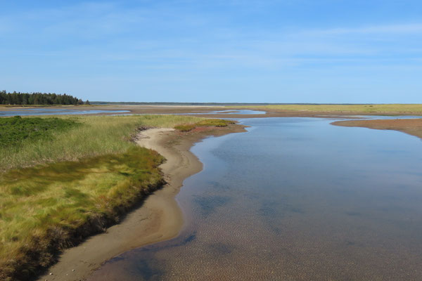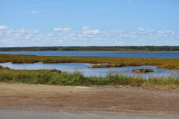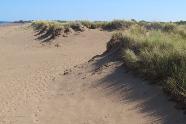 So nah wie möglich immer an der Küste entlang bis zum Nationalpark Kouchibouguac, der dem Schutz der hier liegenden Sandbänke, Dünen, Salzwiesen und Wäldern dient. Wir unternehmen eine 2 stündige herrliche Wanderung über die Düne zu einem Sandstrand erster Klasse.
