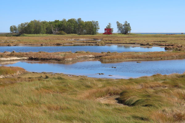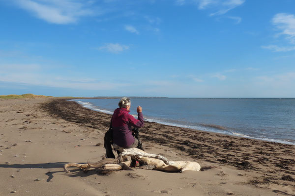 ersichtlich. Der schöne Blick auf die Küste ist je nach Wasserstand aufgrund der Gezeiten sehr unterschiedlich. Wir unternehmen einen Strandspaziergang, sehen dabei einen Seeadler und einen
