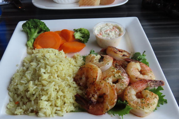 Sternenklarer Himmel bei Mondschein. Nach dem morgendlichen Strandspaziergang wollen wir eigentlich in Shippagan im wohlklingenden Restaurant "Octopus" zu Mittag essen. Aber zu unsere Enttäuschung gibt es nur nicht gerade einladende Fast Food. So fahren wir nochmals die 25 km zum Hafen von Caraquet. Dort essen wir ganz hervorragend , danach gehen wir nochmals am künstlerisch gestalteten Uferweg. Kurz entschlossen fahren wir dann nochmals auf "unseren"