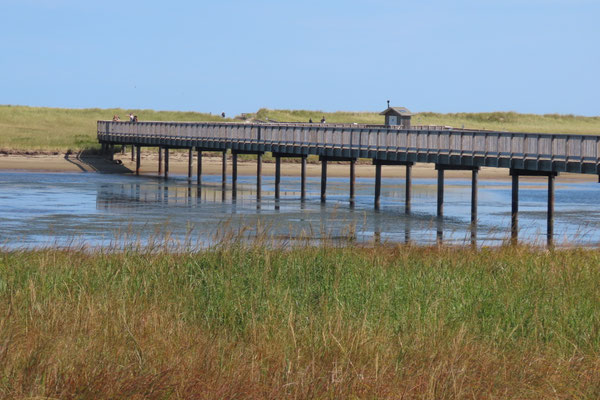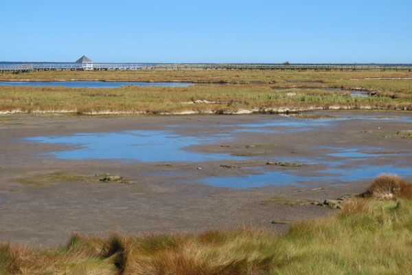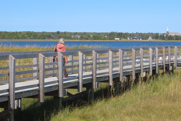 Bevor wir den wunderbaren Ort verlassen, gehen wir nochmals den schön angelegten Steg über die Marschen. Das erneute Traumwetter soll laut Vorhersage die ganze Woche Bestand haben.