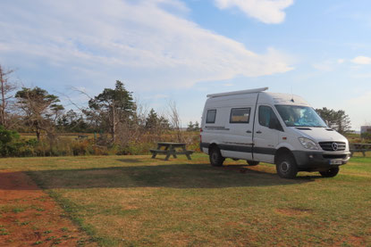 Im Visitor Center erhalten wir von einem sehr engagierten Herrn jede Menge gutes Infomaterial über die Insel und detaillierte Straßenkarten der einzelnen Gebiete. Über Summerside geht es auf der Straße 11 meist an der Küste, die aber zunächst etwas enttäuschend ist. Bei Point West sind wir nach heute insgesamt 205 km im Cedar Dune Provincial Park.